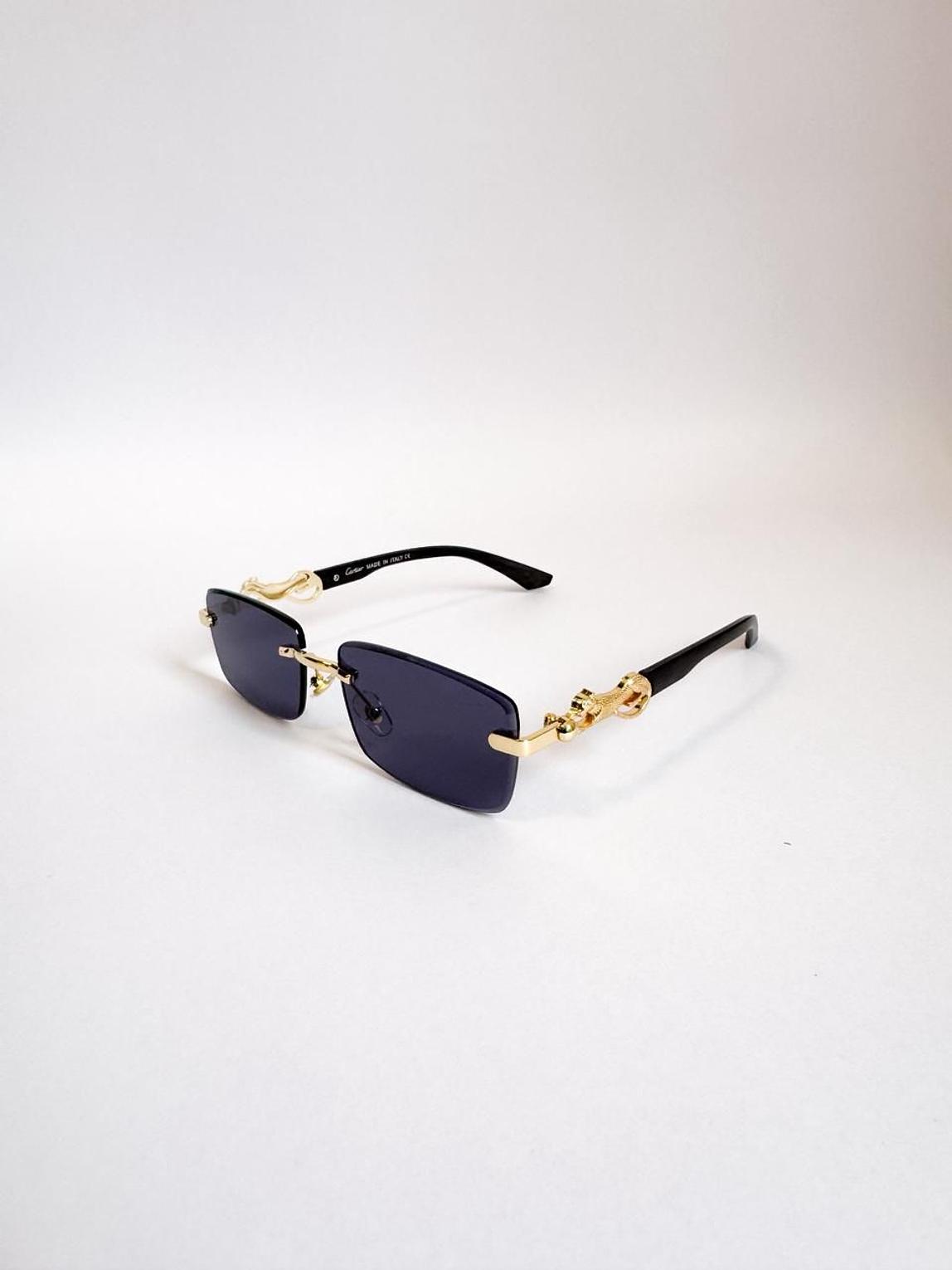 Elevate your style with these sophisticated rimless sunglasses featuring distinctive gold chain detailing and premium dark lenses. The perfect fusion of modern minimalism and luxury accessories for the discerning fashion enthusiast.