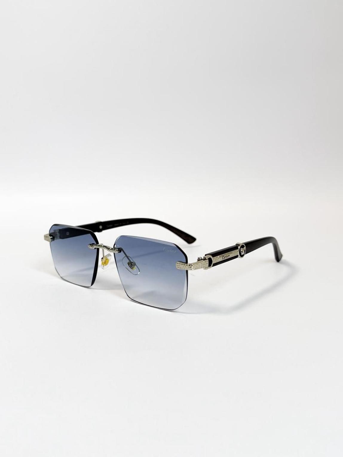 The Cartier Luxe 005 Rimless Gradient Sunglasses in Blue Fade represent the perfect fusion of contemporary style and timeless luxury craftsmanship. These premium sunglasses feature expertly crafted blue gradient lenses that transition seamlessly from deeper blue at the top to crystal clear at the bottom, providing optimal sun protection while maintaining excellent visibility for reading or close-up tasks. The sophisticated rimless design showcases elegant gold-tone metal accents and decorative temple details that exemplify Cartier's renowned attention to detail and luxury heritage. The contrasting black temple arms with gold embellishments create a striking visual balance, while the lightweight construction ensures exceptional comfort during extended wear. The gradient lens technology not only offers comprehensive UV protection but also reduces eye strain in varying light conditions, making these sunglasses ideal for driving, outdoor activities, or urban exploration. The precision-engineered hinges and adjustable components provide a secure, customized fit that complements any face shape, while the distinctive blue fade effect adds a modern twist to the classic aviator-inspired silhouette. Whether you're attending high-profile events, enjoying leisure activities, or making a style statement in professional settings, these sunglasses deliver unparalleled sophistication and performance that reflects your discerning taste for exceptional eyewearÂ