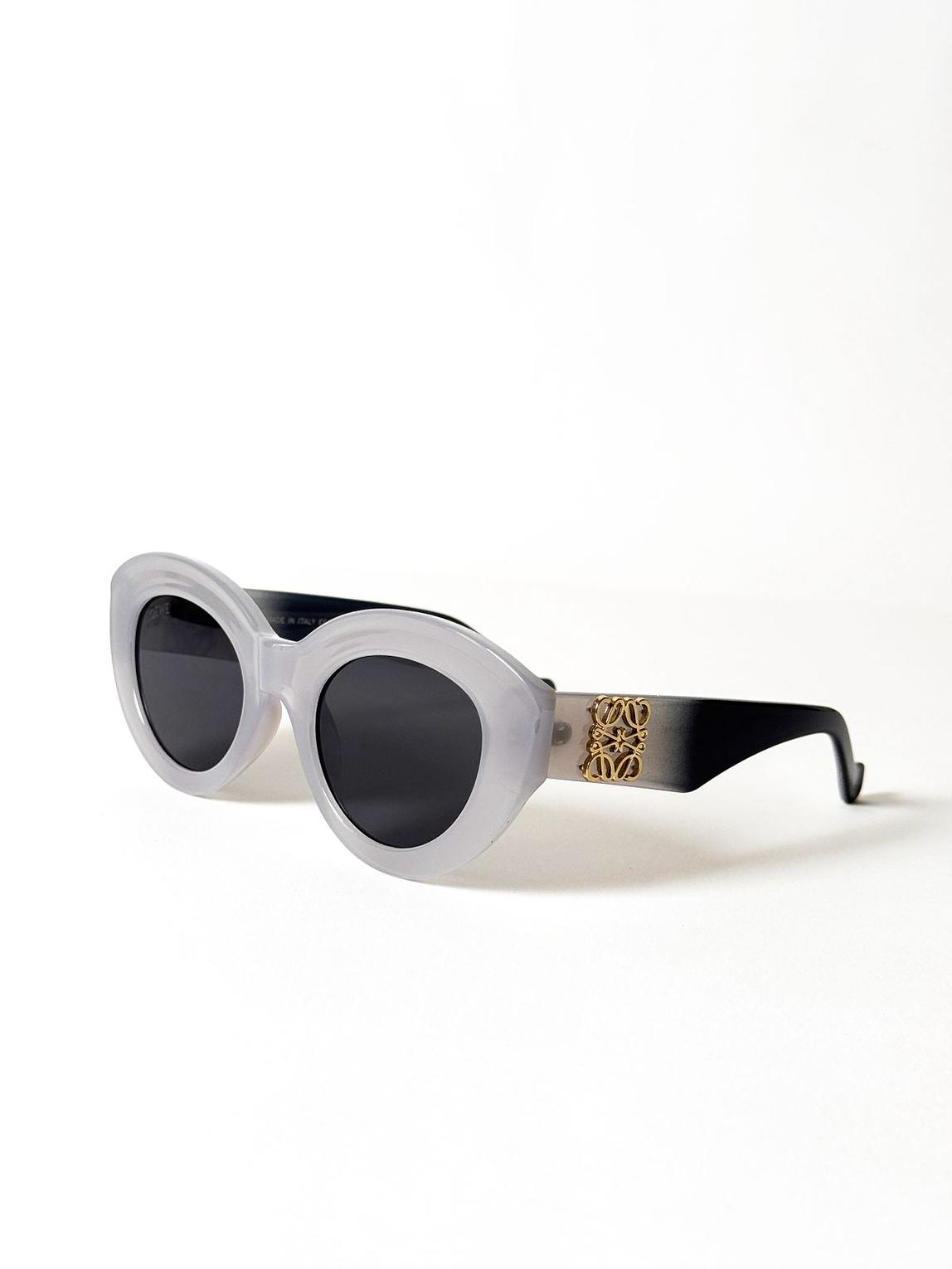 A chic cat-eye frame in grey and black, blending bold style with subtle sophistication.