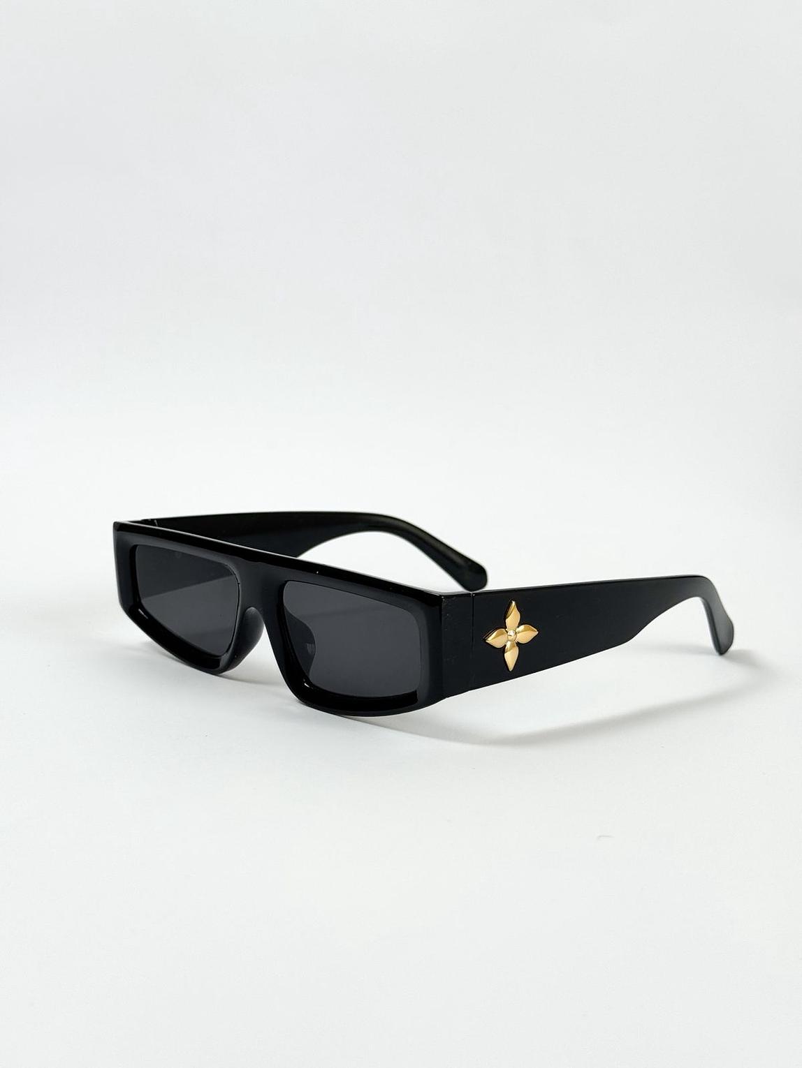 Elevate your daily look with the bold, rectangular silhouette of these sleek black sunglasses. The single, brilliant golden accent adds a touch of signature luxury to an otherwise minimalist, high-fashion frame.