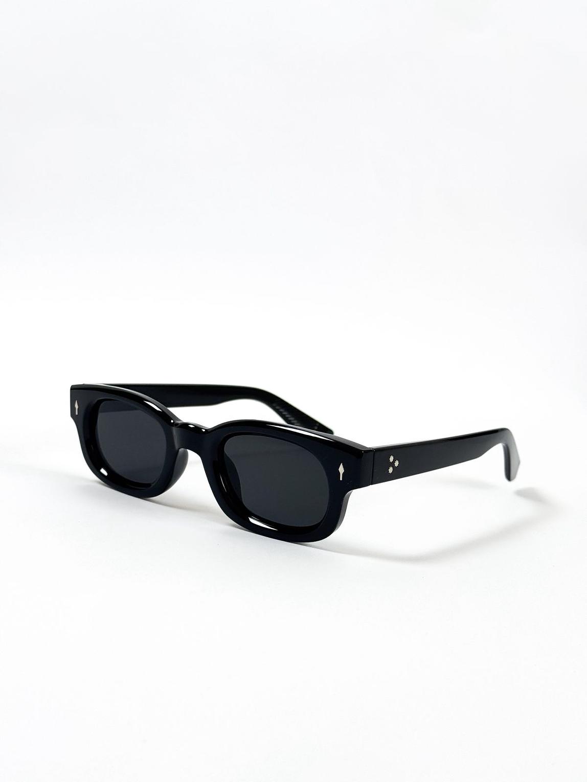 Achieve an effortlessly cool, micro-sunglass trend with these sleek, ultra-narrow frames in polished black acetate. A subtle white logo detail at the temple adds a refined, minimalist mark of distinction.