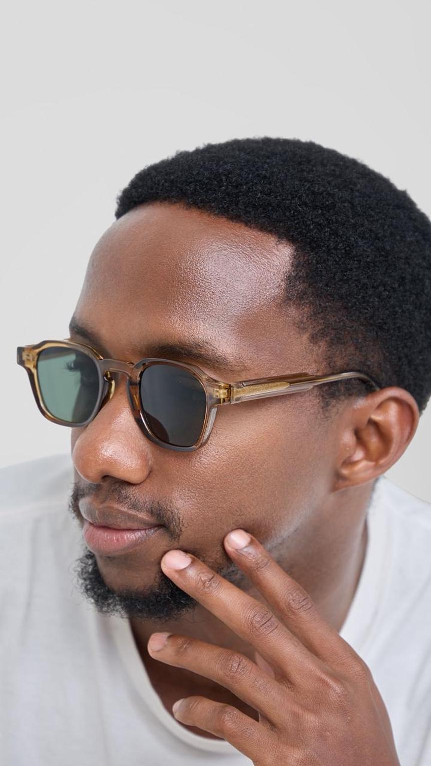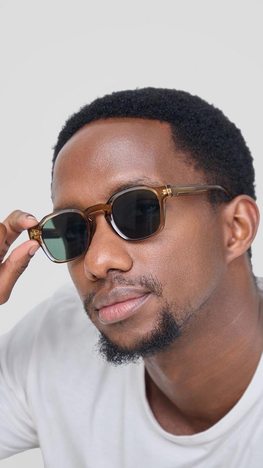 Introducing a fresh, earthy aesthetic with these uniquely shaped frames in a rich, translucent olive-brown acetate. The subtly geometric lenses and dark green tint provide a sophisticated, nature-inspired accessory perfect for refined style.